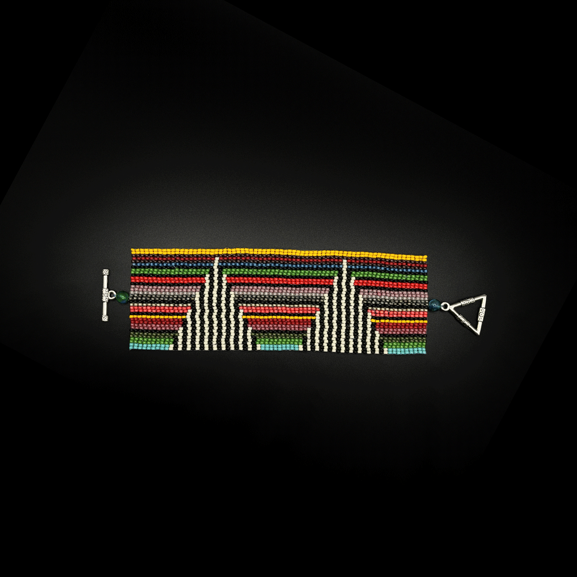 Alegría, color y diseño se fusionan en esta pulsera geométrica de gran impacto visual. Ideal para quienes no temen destacar y llevar una pieza única y vistosa, llena de energía positiva.