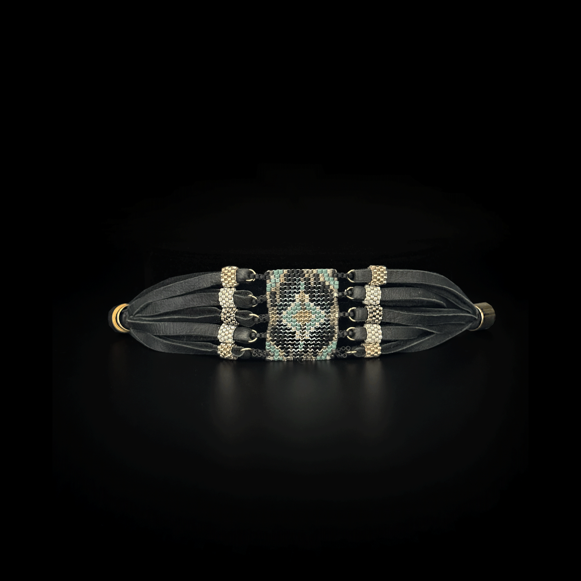 Moderna, elegante y con un toque rebelde. Esta pulsera combina la suavidad del cuero con la delicadeza del tejido artesanal. Ideal para quienes disfrutan de piezas versátiles que pueden acompañar tanto un look casual como uno más sofisticado.