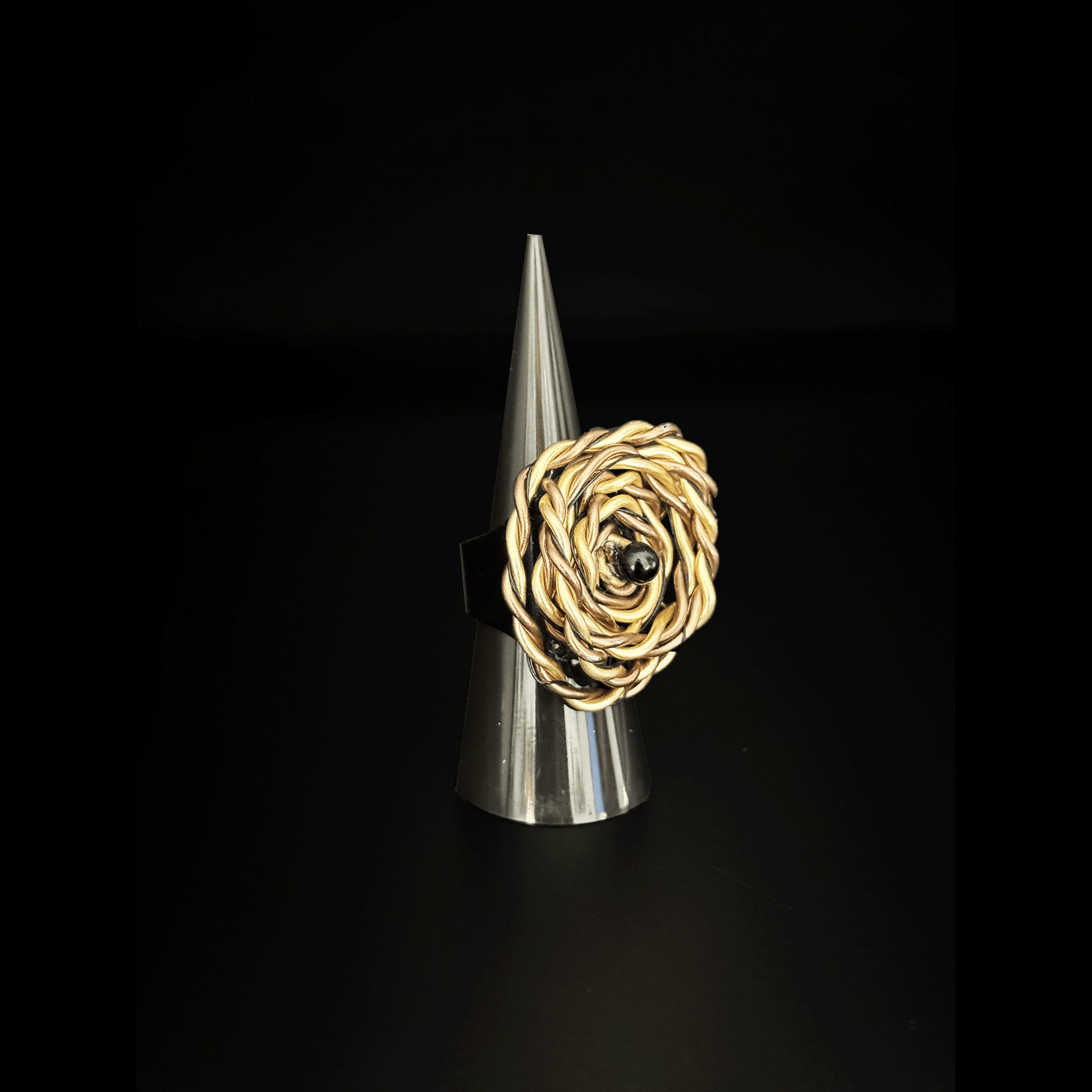 Un espiral floral en tonos dorados que evoca fuerza y belleza sin domesticar. Esta rosa metálica es ideal para quienes buscan un accesorio único con presencia y movimiento.