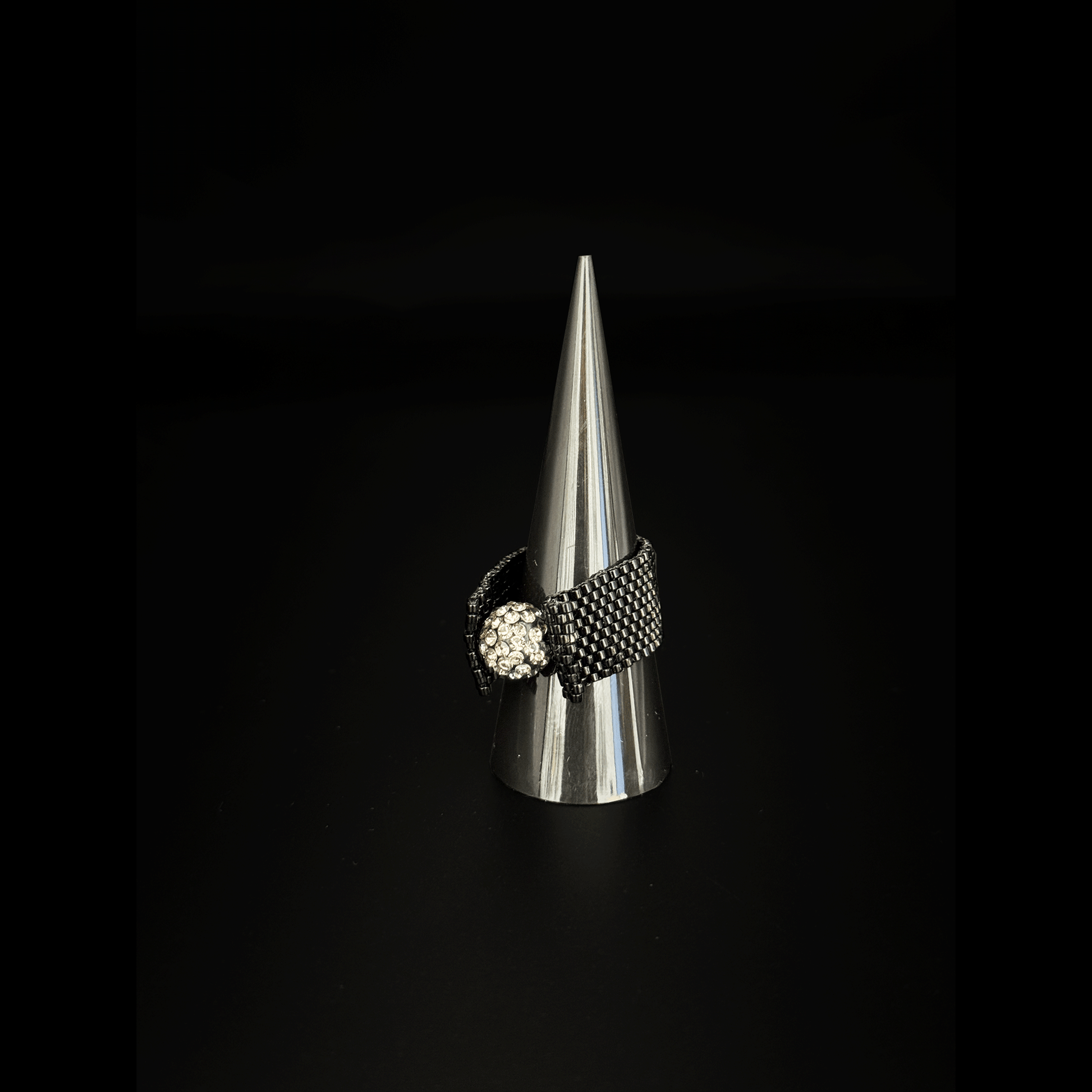 Delicado y juguetón, este anillo combina cristales transparentes y grisáceos con una base tejida. Ideal para llevar en el día a día cuando quieres un detalle sutil, pero especial.