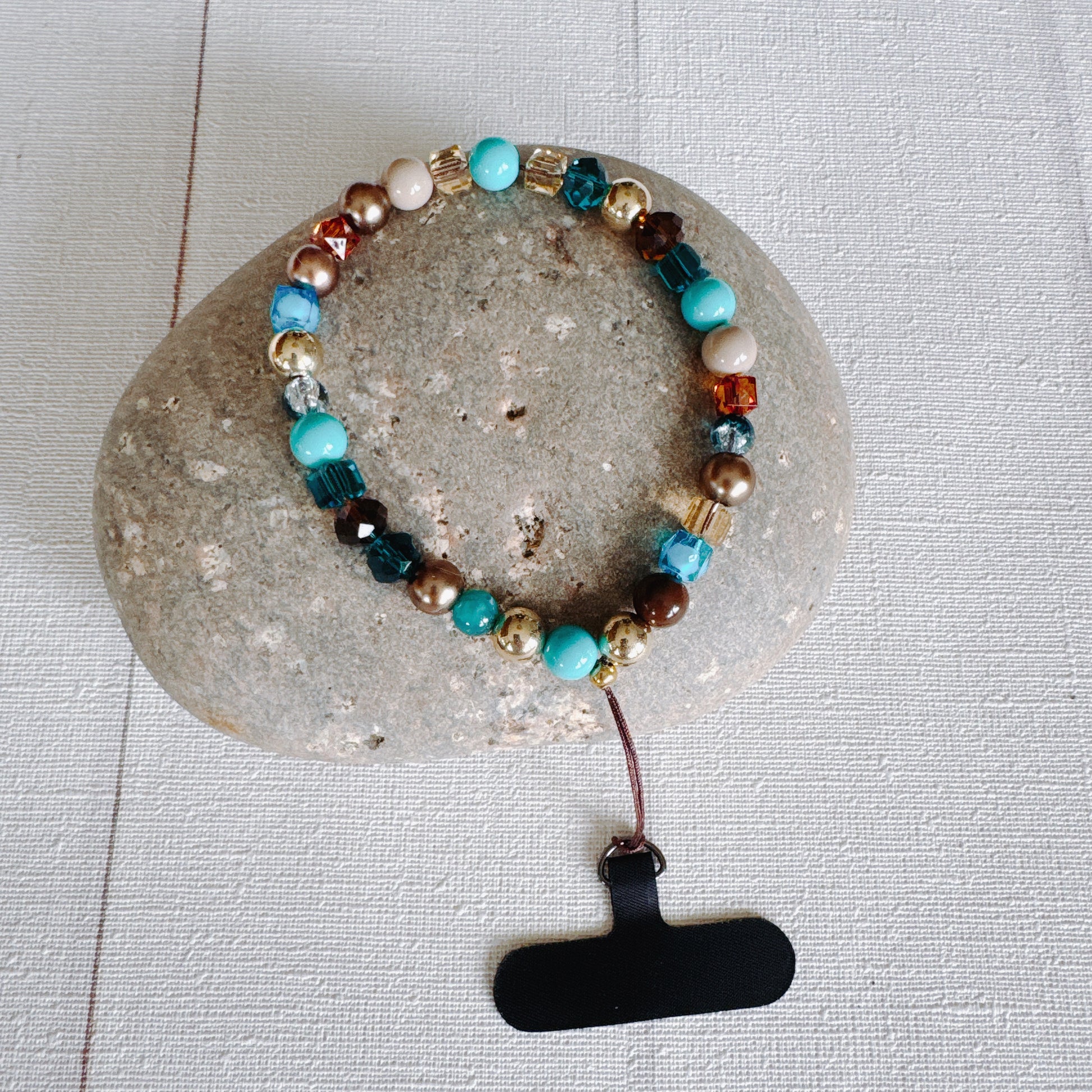 Esta correa de muñeca para celular está hechas a mano con mostacillas seleccionadas una a una, combinando colores con intensión.