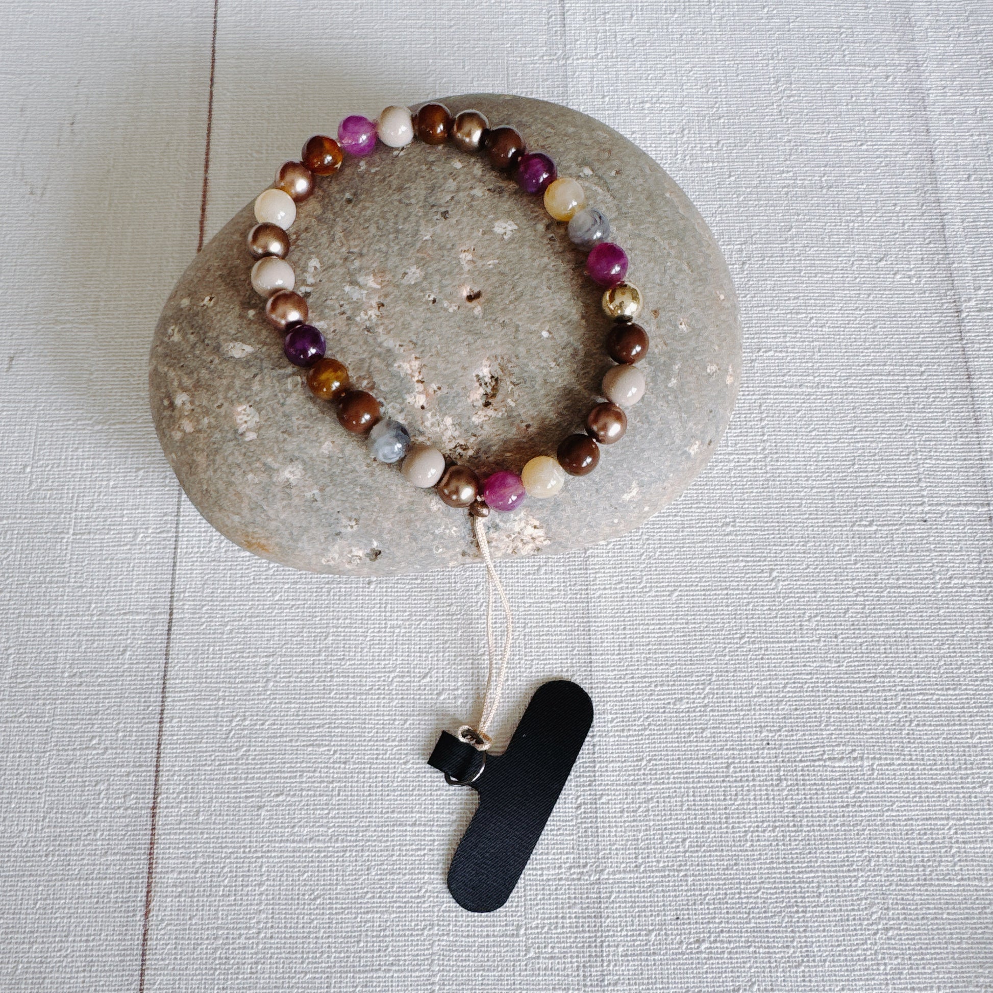 Esta correa de muñeca para celular está hechas a mano con mostacillas seleccionadas una a una, combinando colores con intensión.