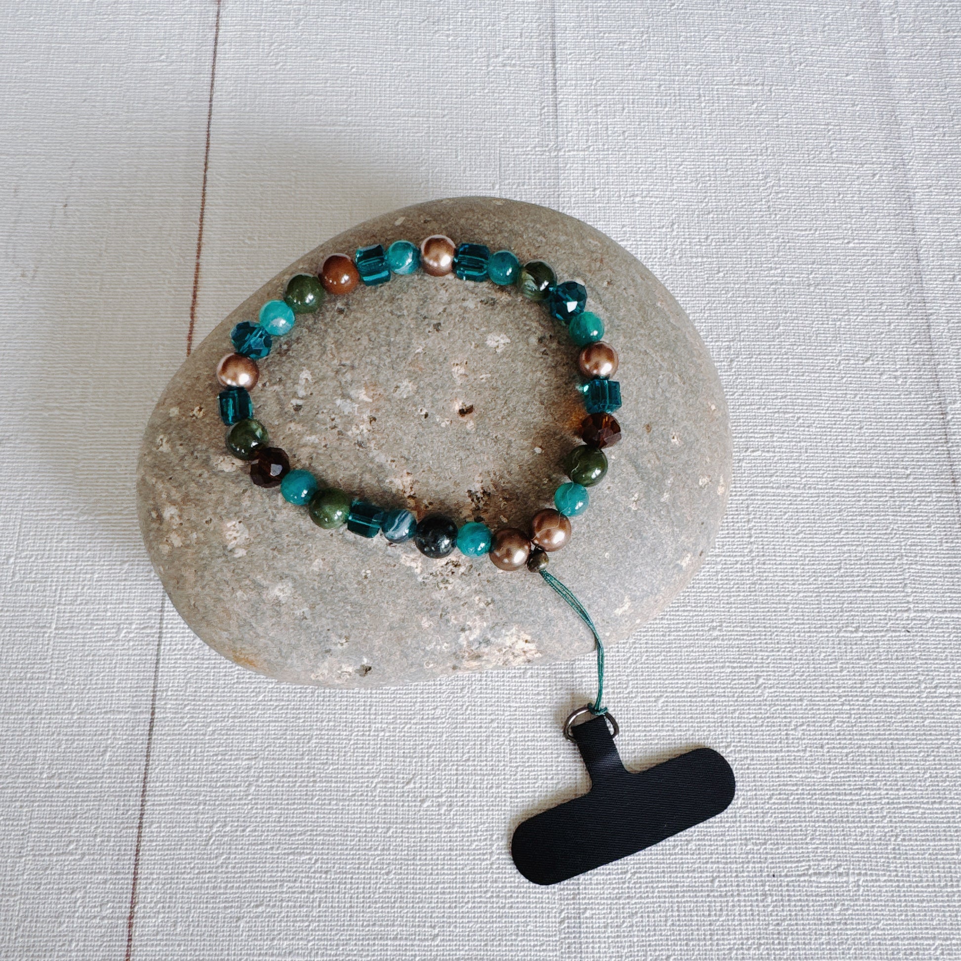Esta correa de muñeca para celular está hechas a mano con mostacillas seleccionadas una a una, combinando colores con intensión.