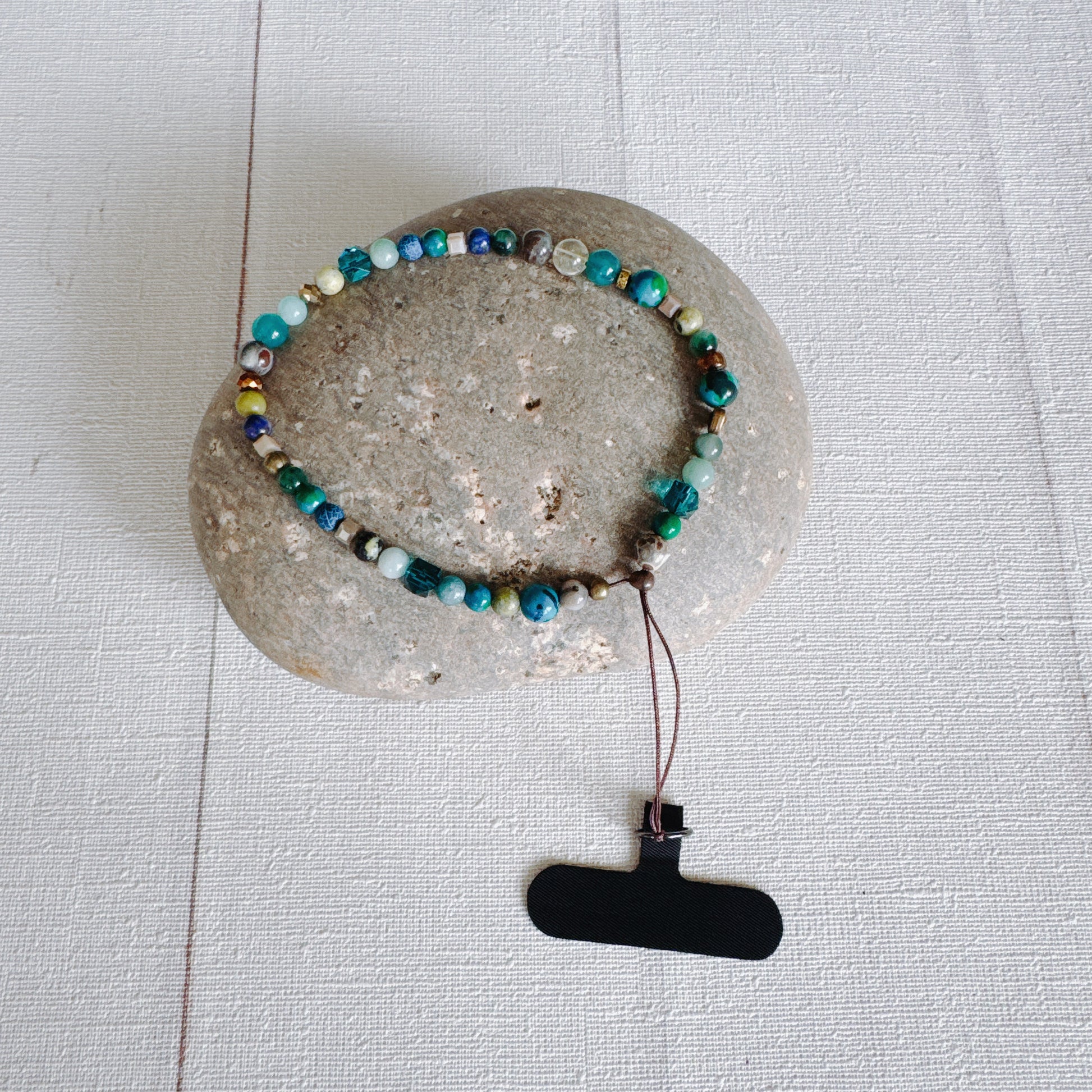 Esta correa de muñeca para celular está hechas a mano con mostacillas seleccionadas una a una, combinando colores con intensión.