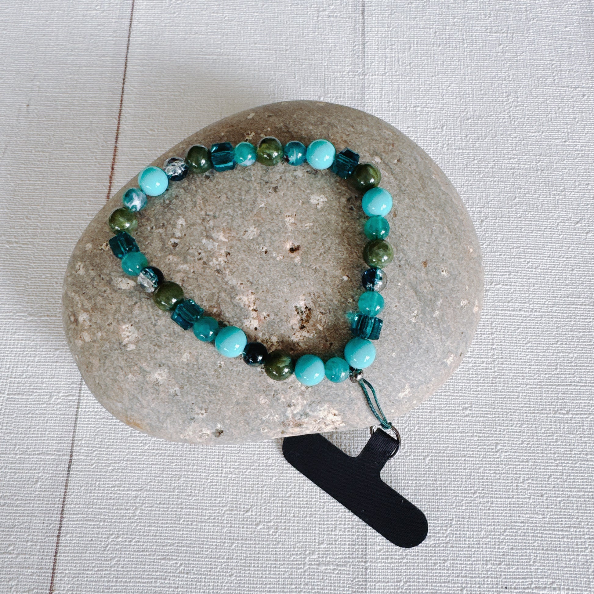 Esta correa de muñeca para celular está hechas a mano con mostacillas seleccionadas una a una, combinando colores con intensión.