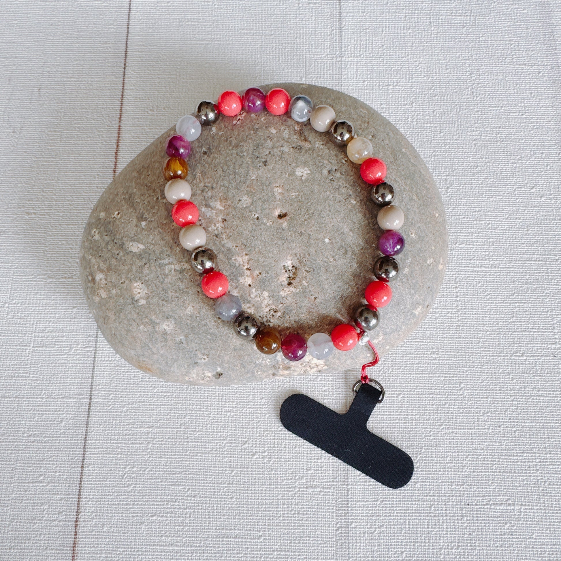 Esta correa de muñeca para celular está hechas a mano con mostacillas seleccionadas una a una, combinando colores con intensión.