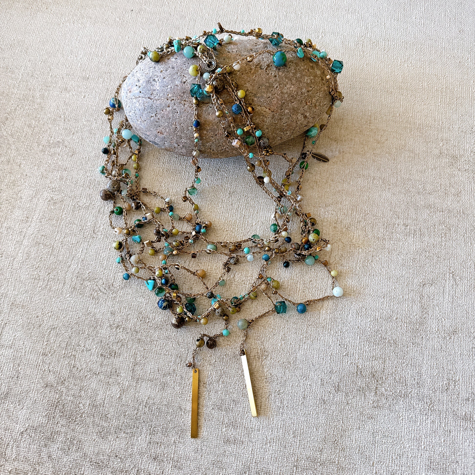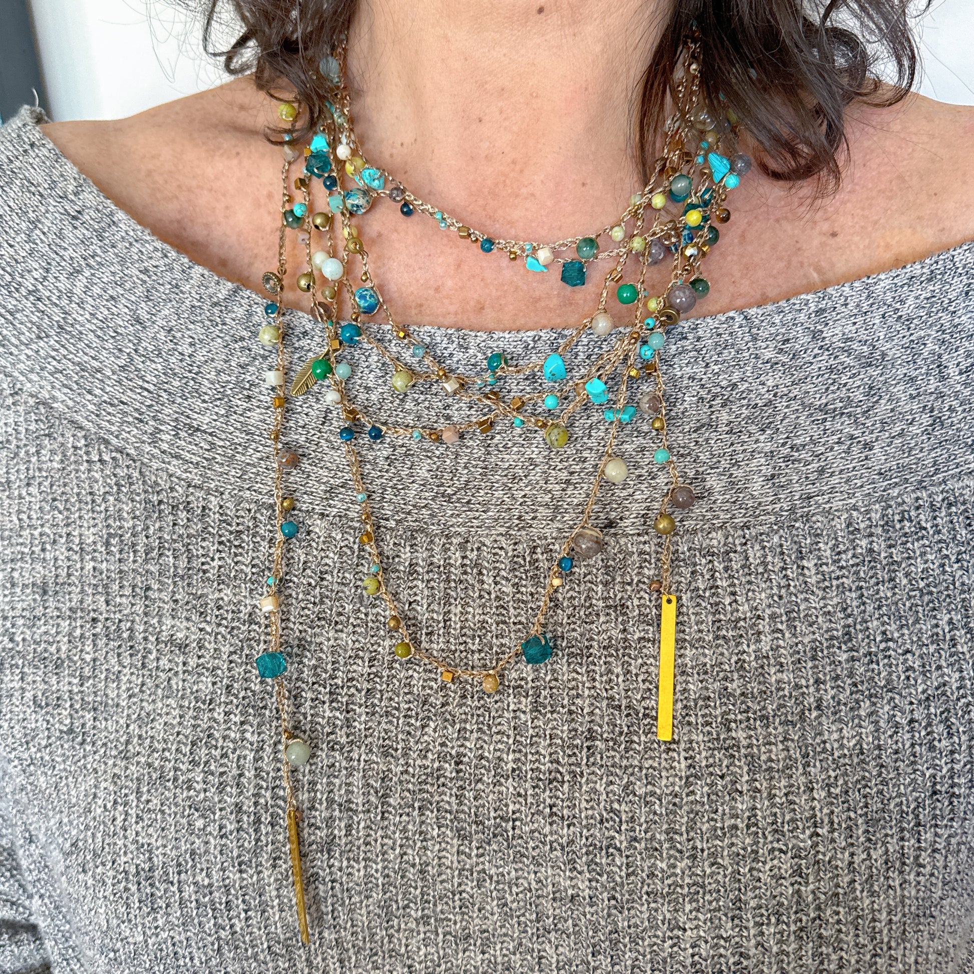Este collar es un canto a la libertad creativa. Su diseño escapa de la simetría clásica para celebrar lo espontáneo y lo imperfectamente bello.