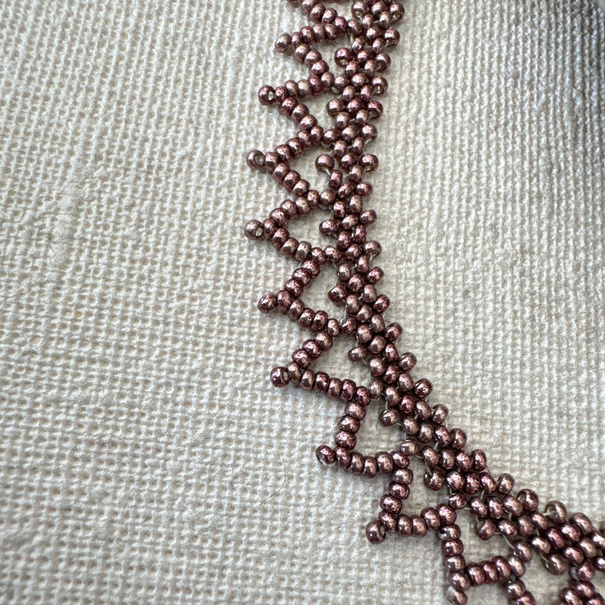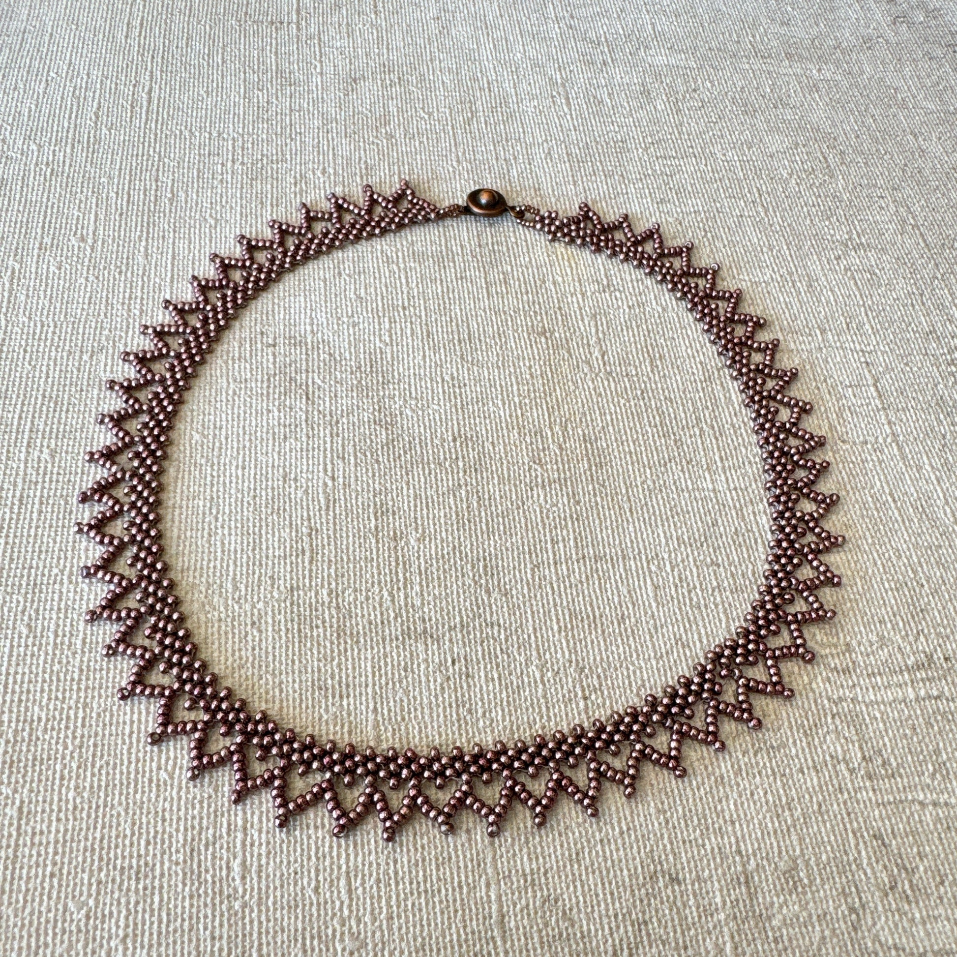 Collar tipo choker estilo antiguo pero sencillo. Para cualquier tenida y ocasión. Concentrarme en poner cada una de las mostacillas me calmó mientras esperaba que mi marido saliera de su estado de gravedad en la que estaba.