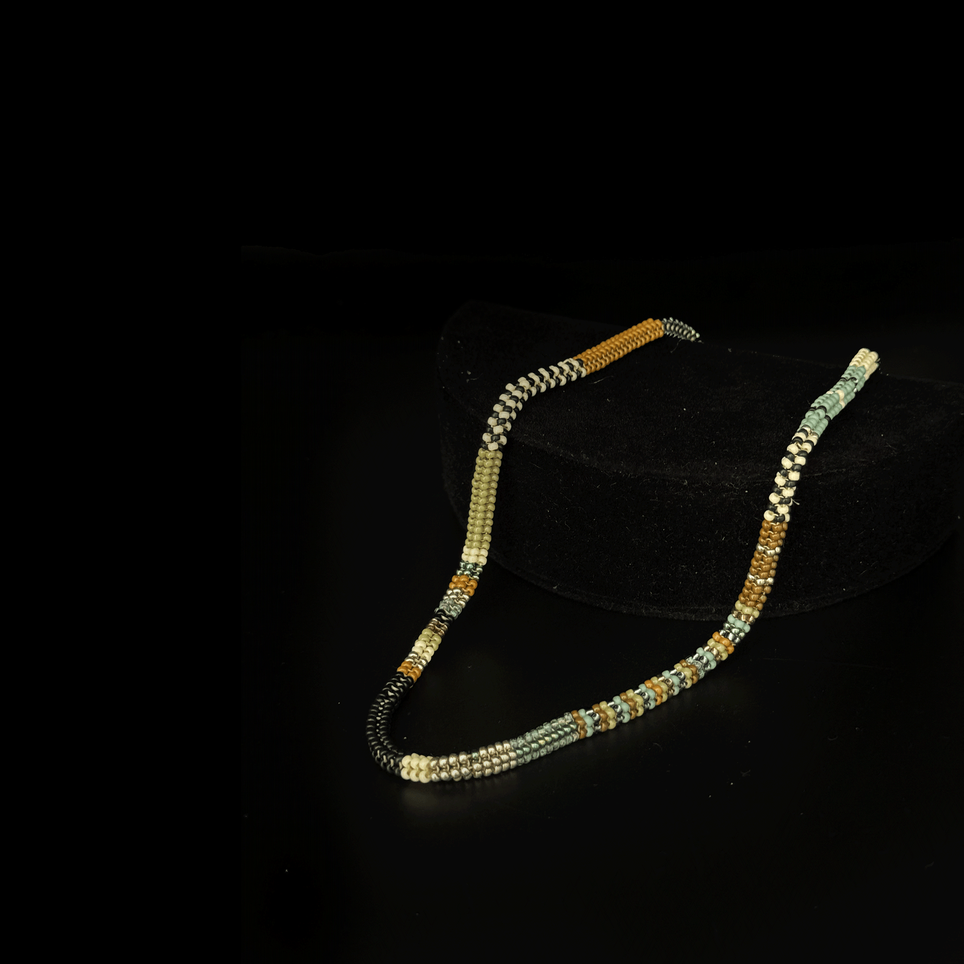 Diseñado para acompañarte día a día, este collar tejido a mano con técnica espiga tubular destaca por su calidez, suavidad y sencillez. Las mostacillas Miyuki en tonos cálidos aportan una sensación de cercanía y conexión con lo esencial.
