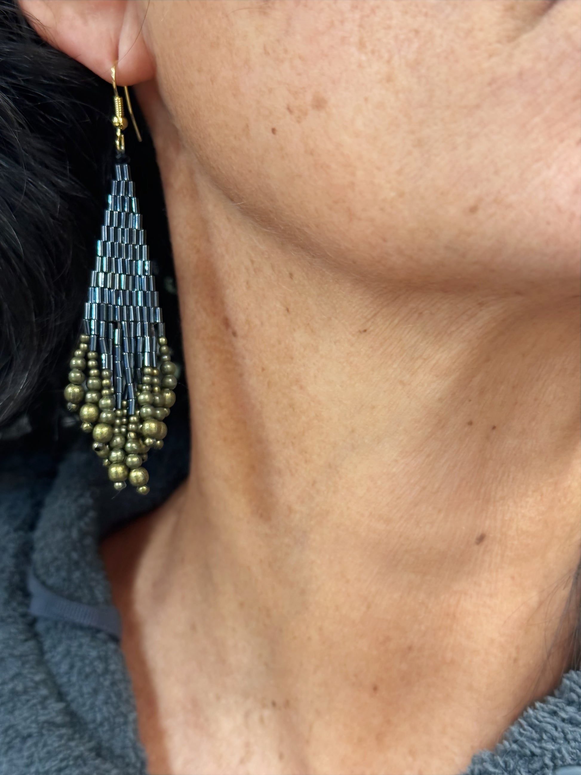 Un diseño que fusiona la libertad del estilo bohemio con la elegancia de los detalles bien pensados. Estos aros están tejidos a mano con la técnica brick y canutillos Miyuki, generando una pieza con textura, movimiento y brillo sutil.