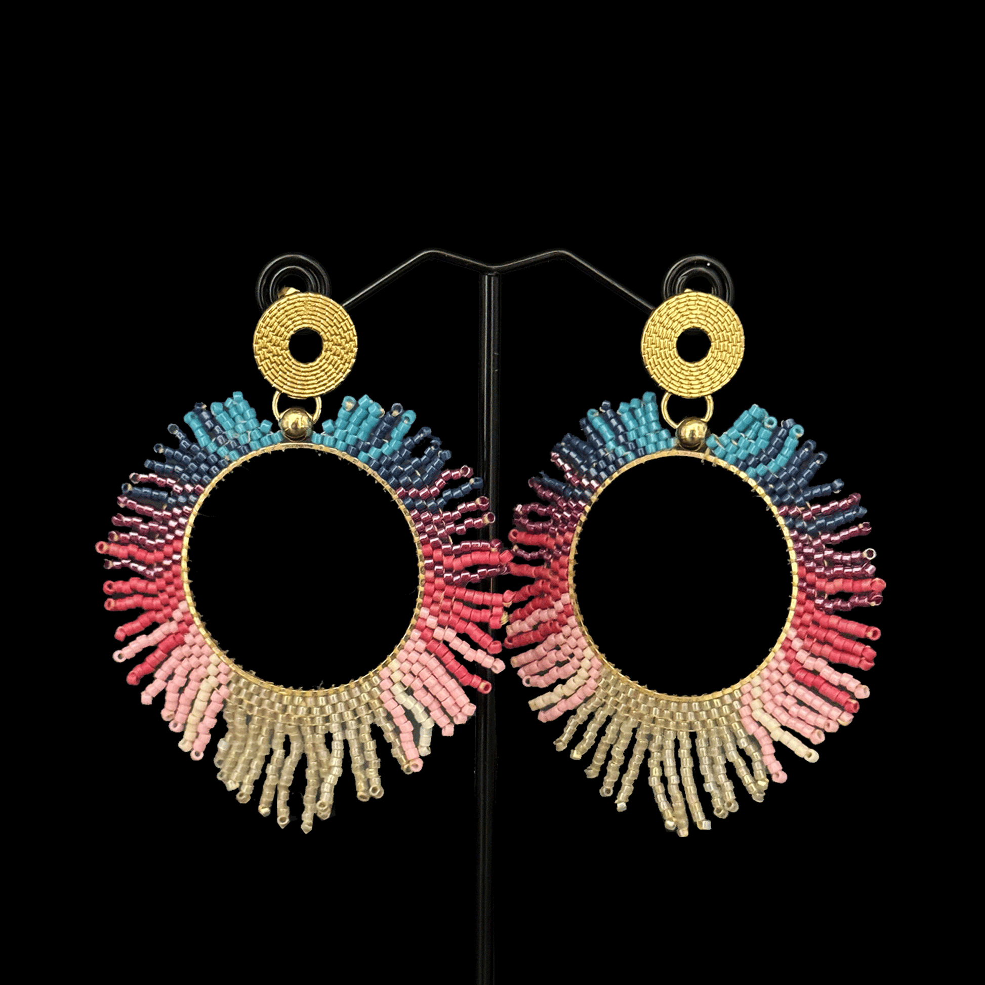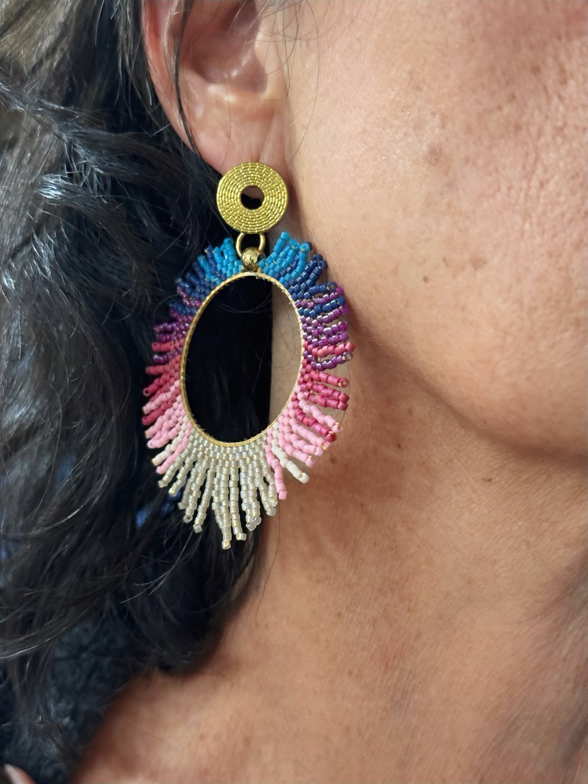 Un llamado a atreverte, a jugar con el color, a expresarte sin miedo. Estos aros circulares tejidos a mano con técnica brick están pensados para iluminar tus días y romper con lo neutro.