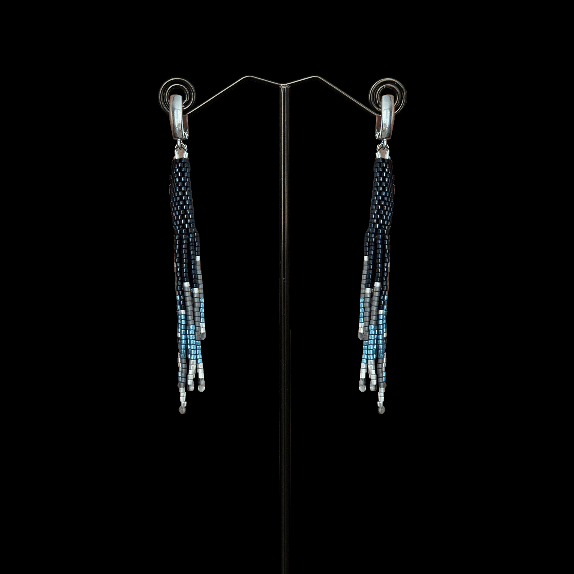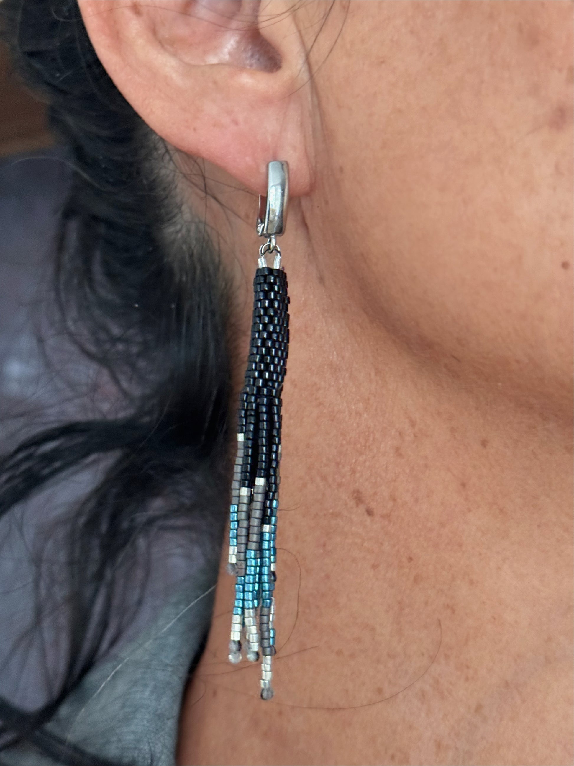 Livianos, alegres y pensados para acompañarte todos los días. Estos aros están hechos a mano con la técnica tubular en mostacillas Miyuki y terminan en delicados flecos que se mueven con gracia en cada paso.