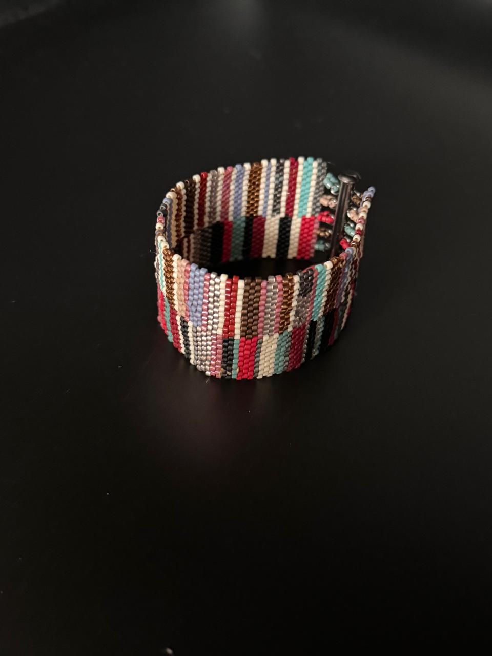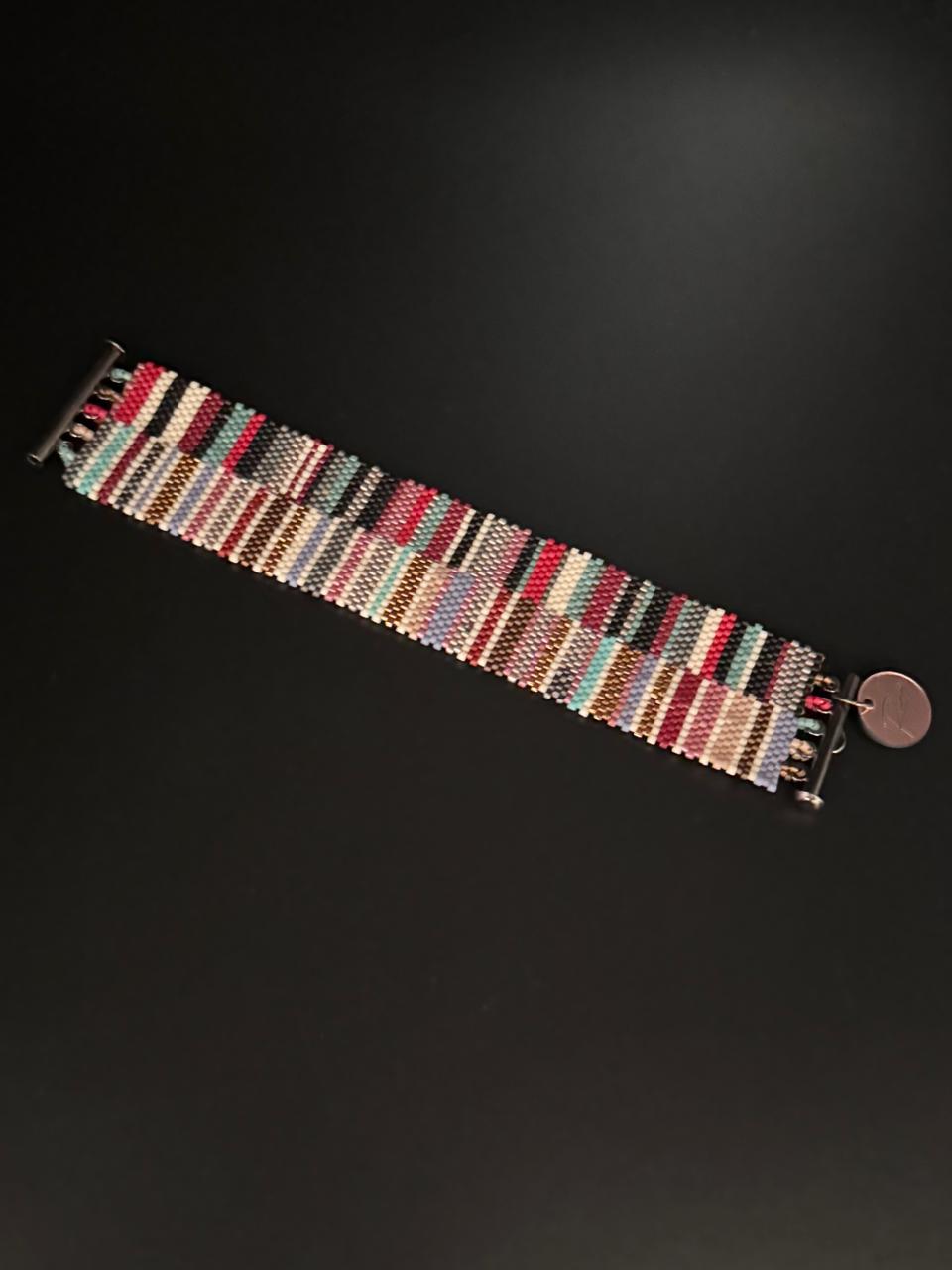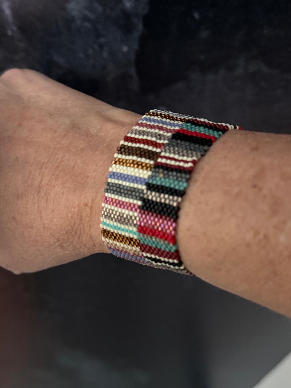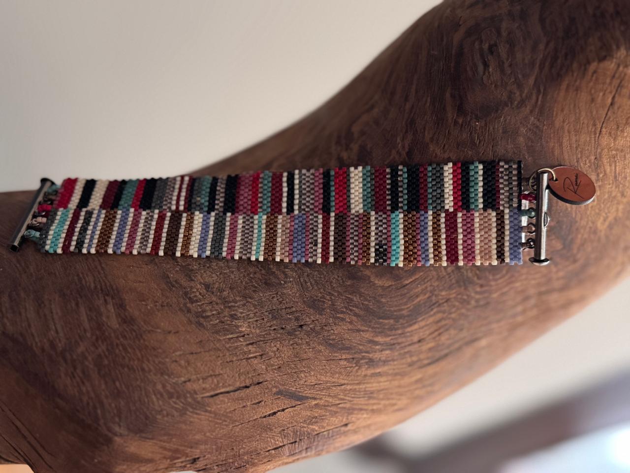 Ideal para quienes buscan un accesorio con fuerza gráfica, sin dejar de lado el trabajo artesanal y la versatilidad cromática.