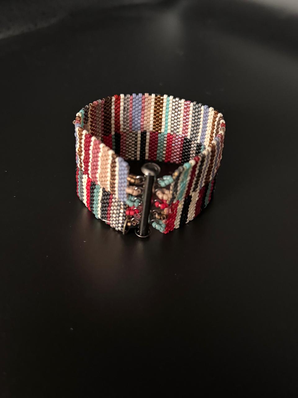 El diseño transmite una mezcla de tradición, textura y eclecticismo. Tiene algo de textil latinoamericano, algo de pintura abstracta, y mucho de pieza con identidad.