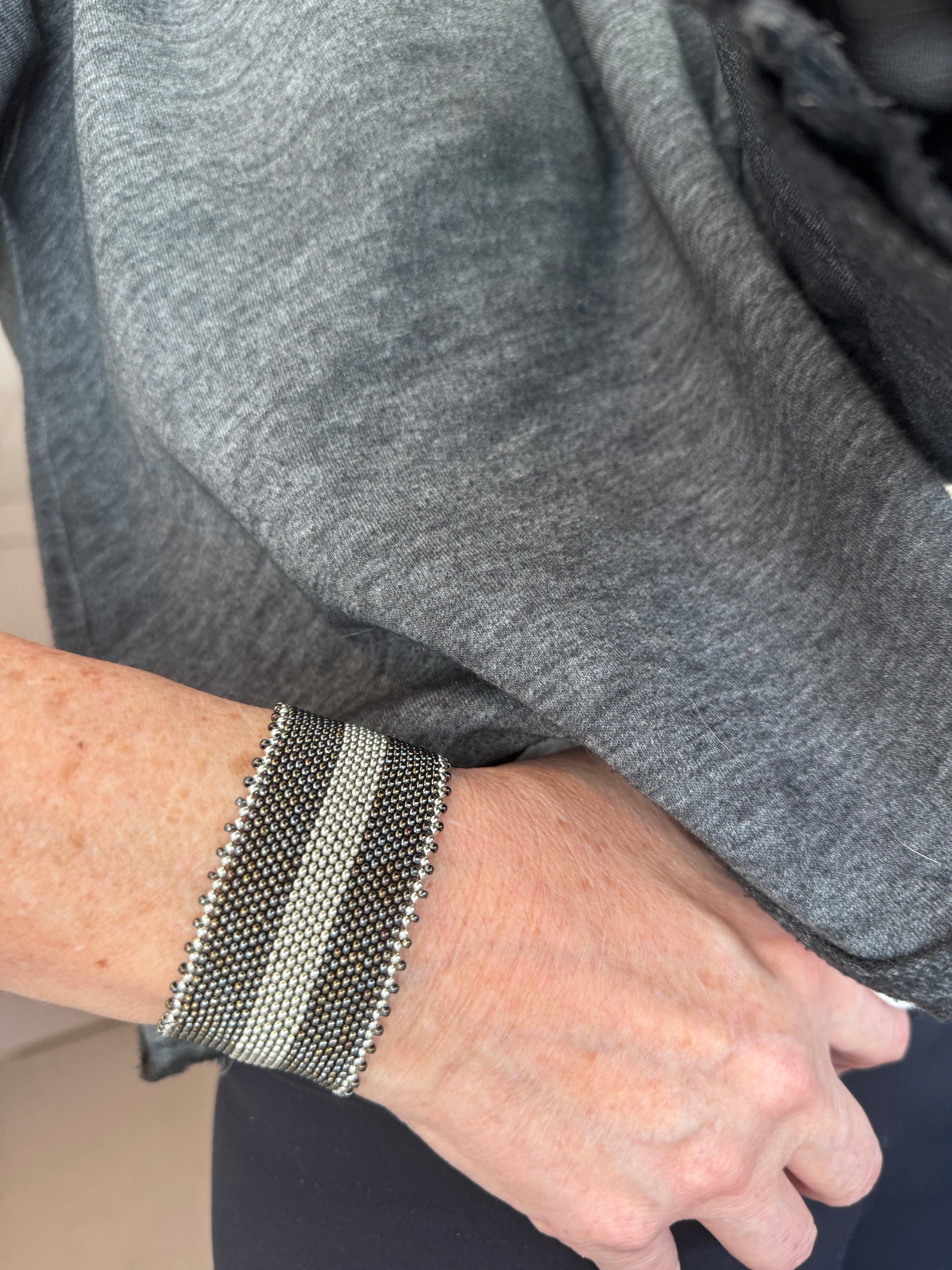 Mi querida Pao, es una persona que ha sido parte importante en mi vida. Trabaja conmigo hace 10 años y hemos formado una amistad muy linda. Ella hizo esta pulsera, en las tardes nos sentamos a mostacillar y conversar de la vida. Entre café y café nos contamos de la vida y compartimos con cualquier amiga que quiera sentarse a hacer lo que más le guste en el taller. Un lugar donde confluyen las buenas energías.