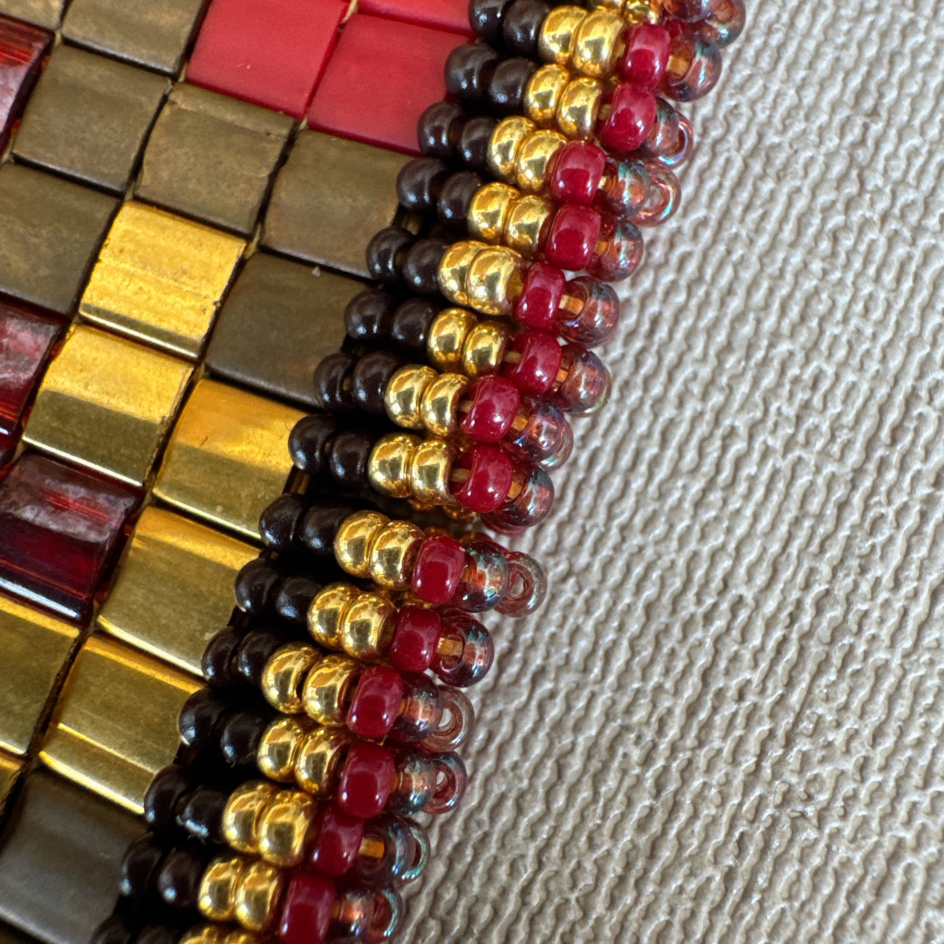 Técnica: Puntada cuadrada con tilas Miyuki y flecos de mostacillas Miyuki