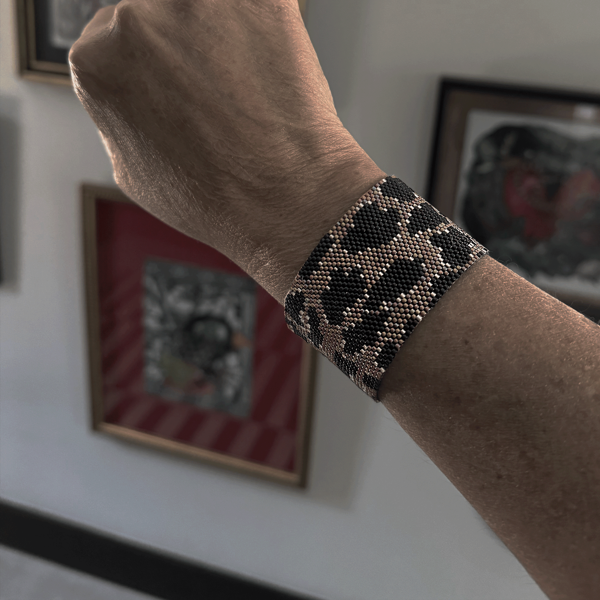 Animal print reinventado con elegancia. Esta pulsera es moda salvaje, con tonos sobrios y sofisticados que la convierten en una pieza infalible para destacar con estilo. Perfecta para espíritus libres con alma urbana