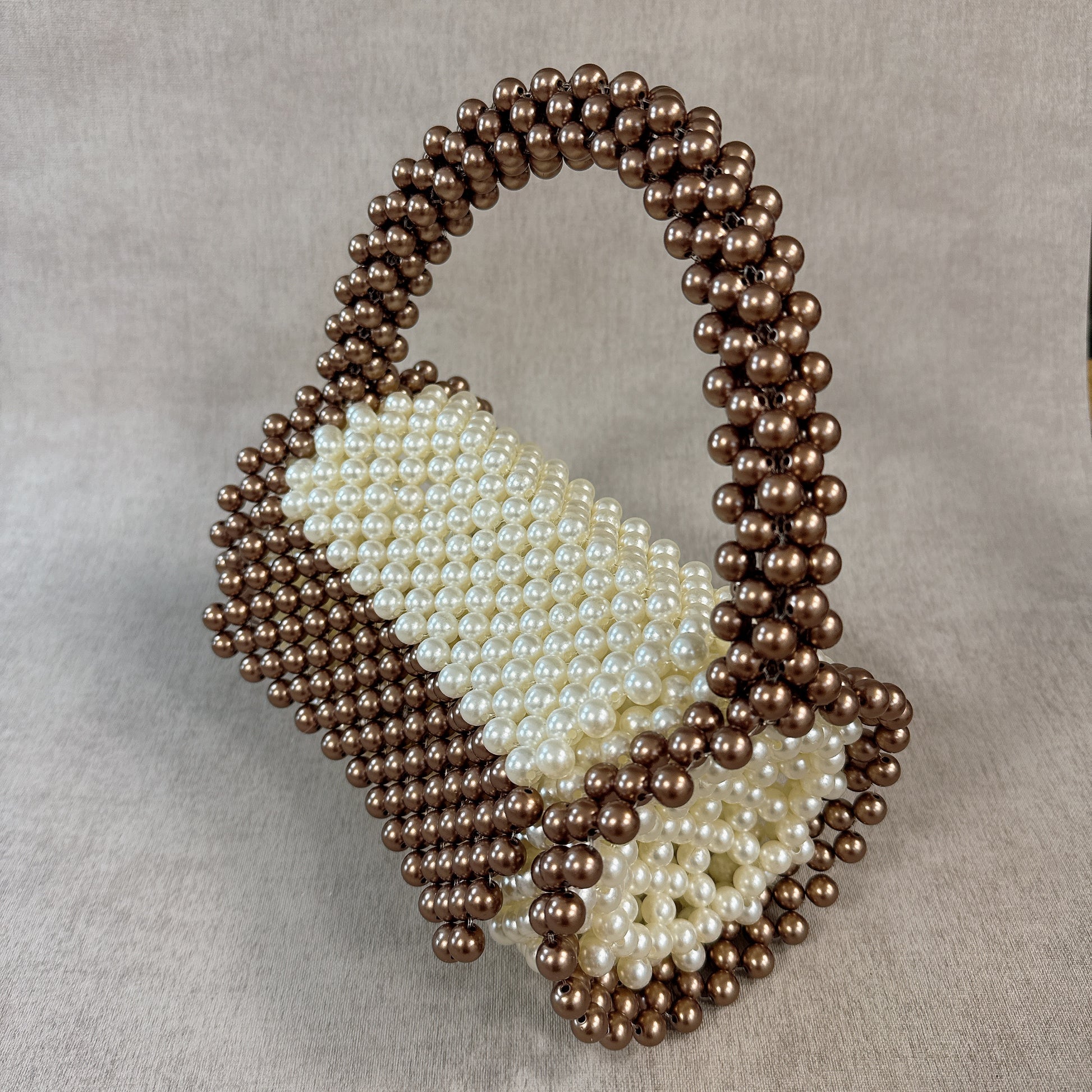 Cartera estructurada, tejida a mano con cuentas que combinan la calidez del marrón chocolate y la luminosidad nacarada del marfil. Su diseño resalta la elegancia de lo clásico reinterpretado con un aire moderno y artesanal. Compacta, firme y llamativa, es el accesorio perfecto para darle un toque de distinción a tus looks cotidianos o de ocasión.