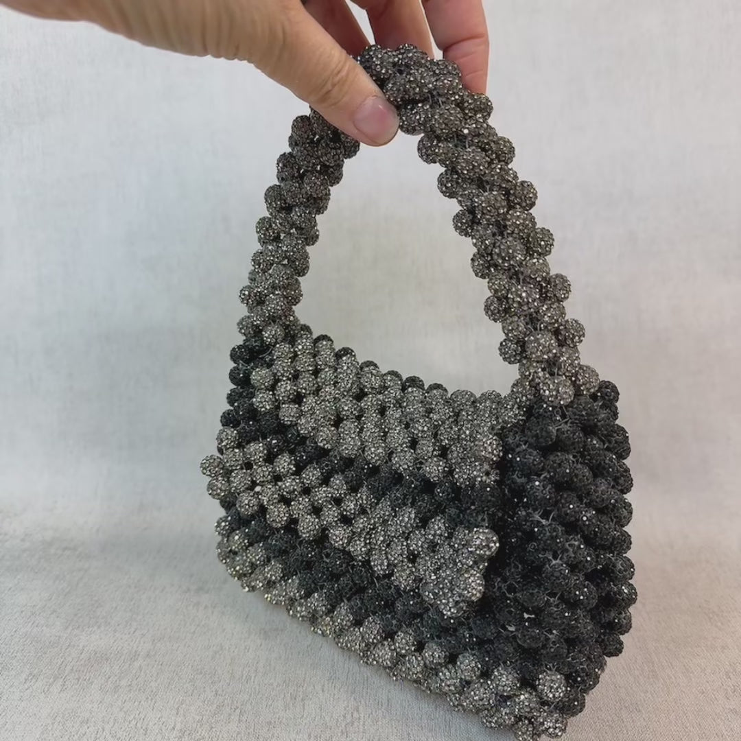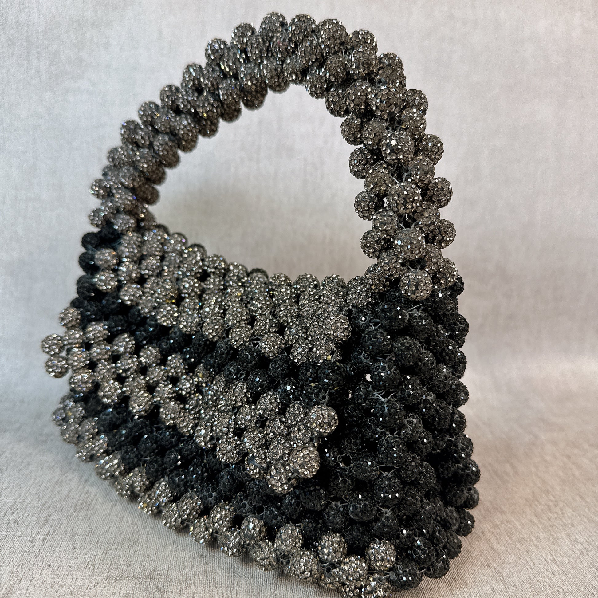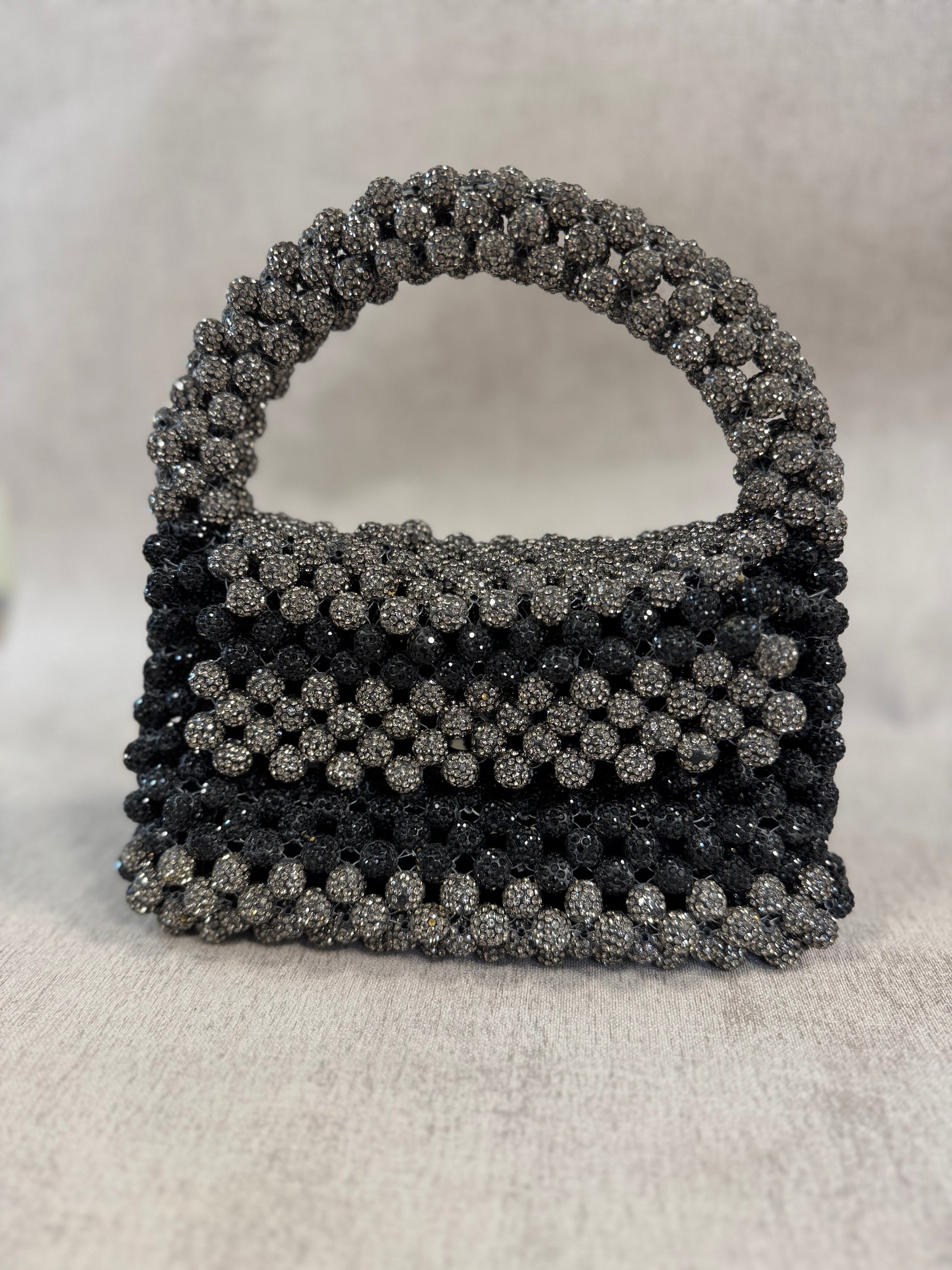 Cartera tejida completamente a mano con mostacillas brillantes para dar un toque ya sea a tu tenida mas casual o acompañar una traje de noche.